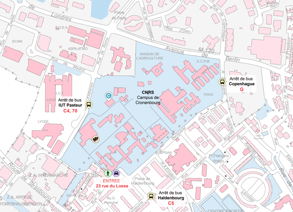 Entrée au 23 rue du Loess, Centre Européen de Sciences Quantiques, Campus CNRS Cronenbourg