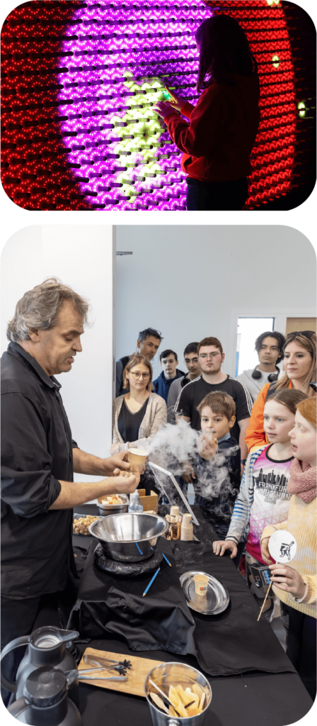 Des jeux sont également proposés pour éveiller petits et grands aux concepts de la physique quantique. La jungle quantique, qui avait illuminé l’édition passée, s’installe définitivement au CESQ. Il s’agit d’une installation artistique interactive, créée par l’artiste allemand Robin Baumgarten, qui permet d’interagir avec la simulation à grande échelle de l’équation de Schrödinger.